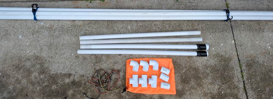 · 2x 3-ft PVC pipes with couplers attached and taped to inhibit removal