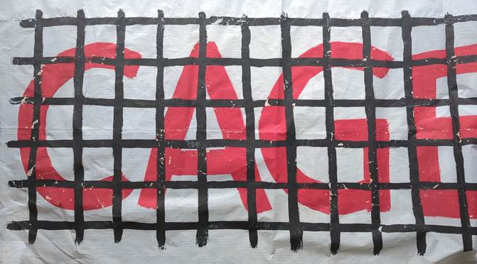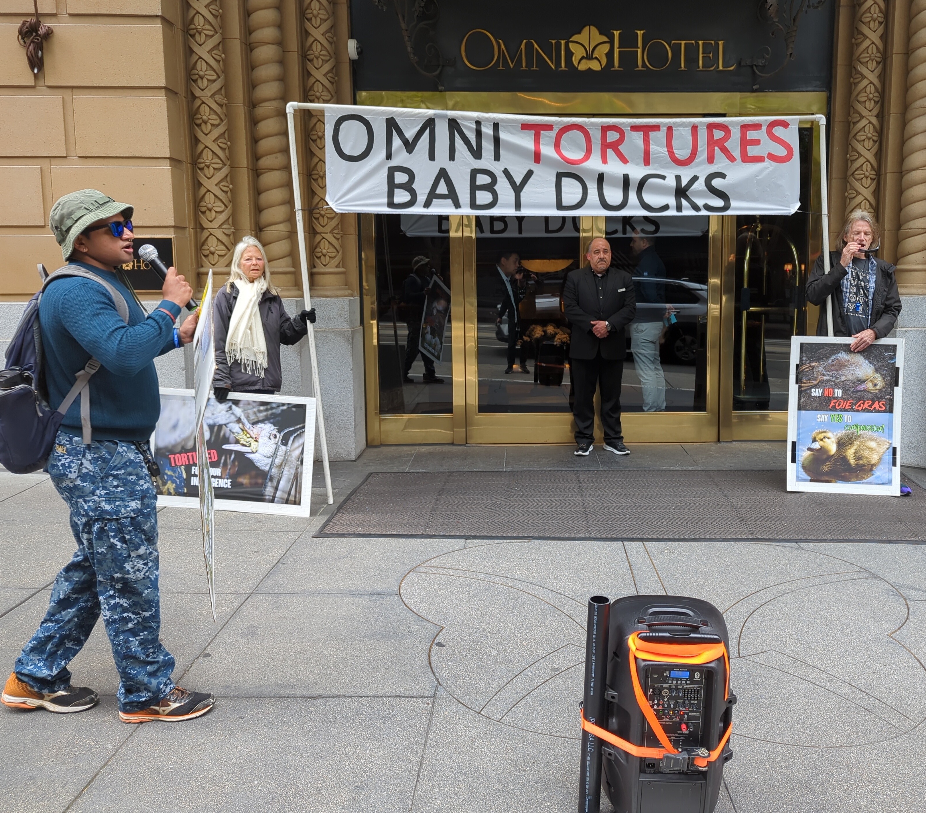 So now I had two banners but it required four people to hold them: