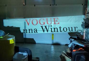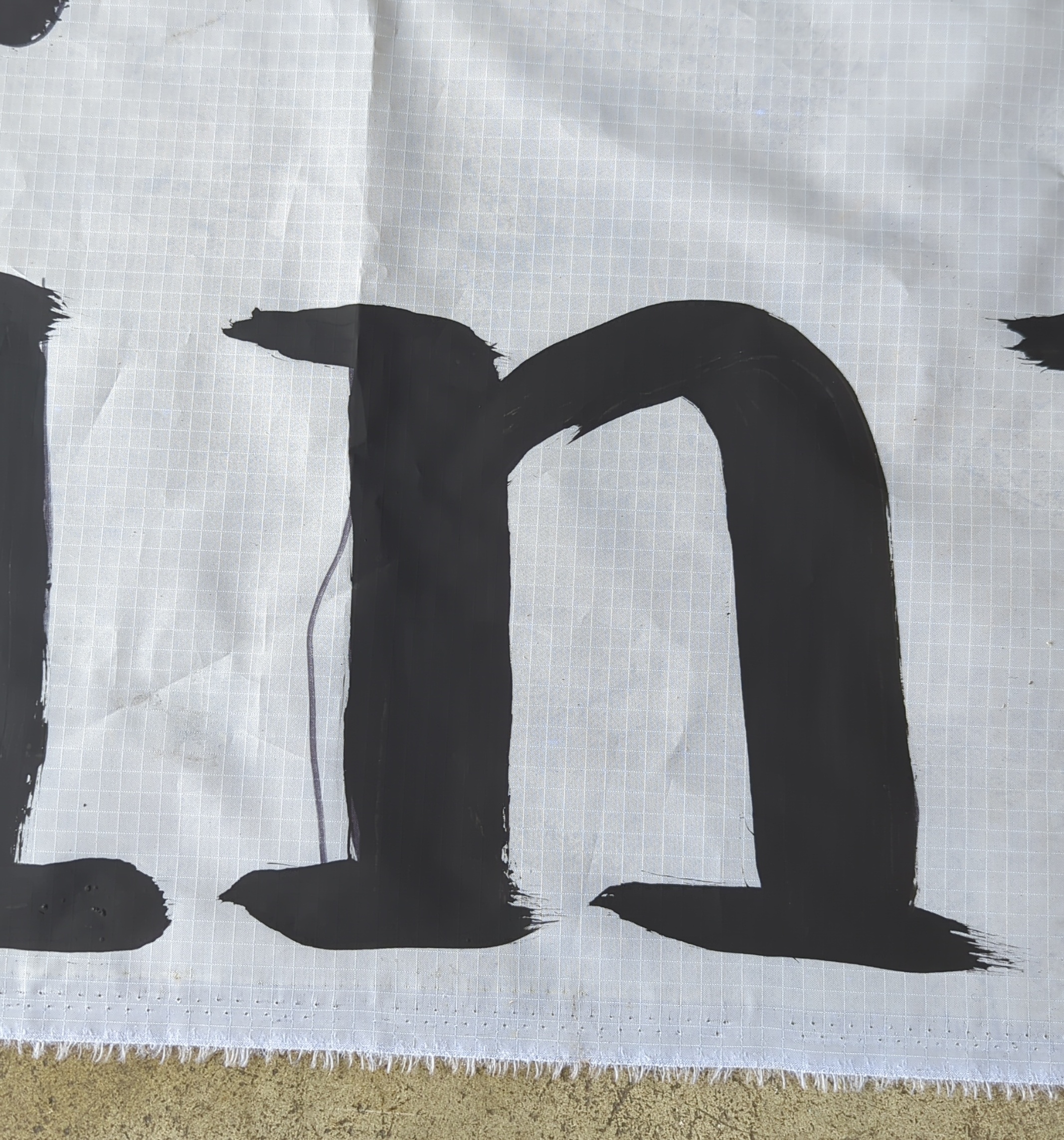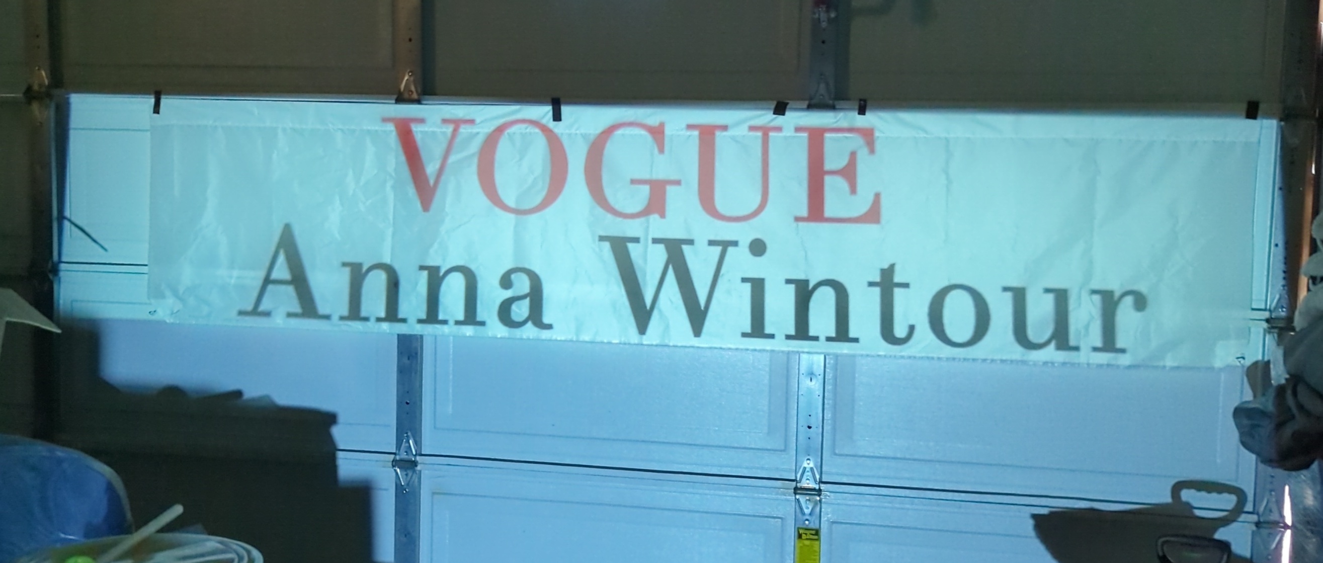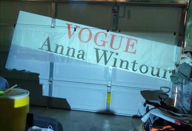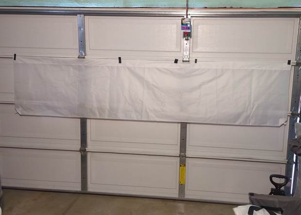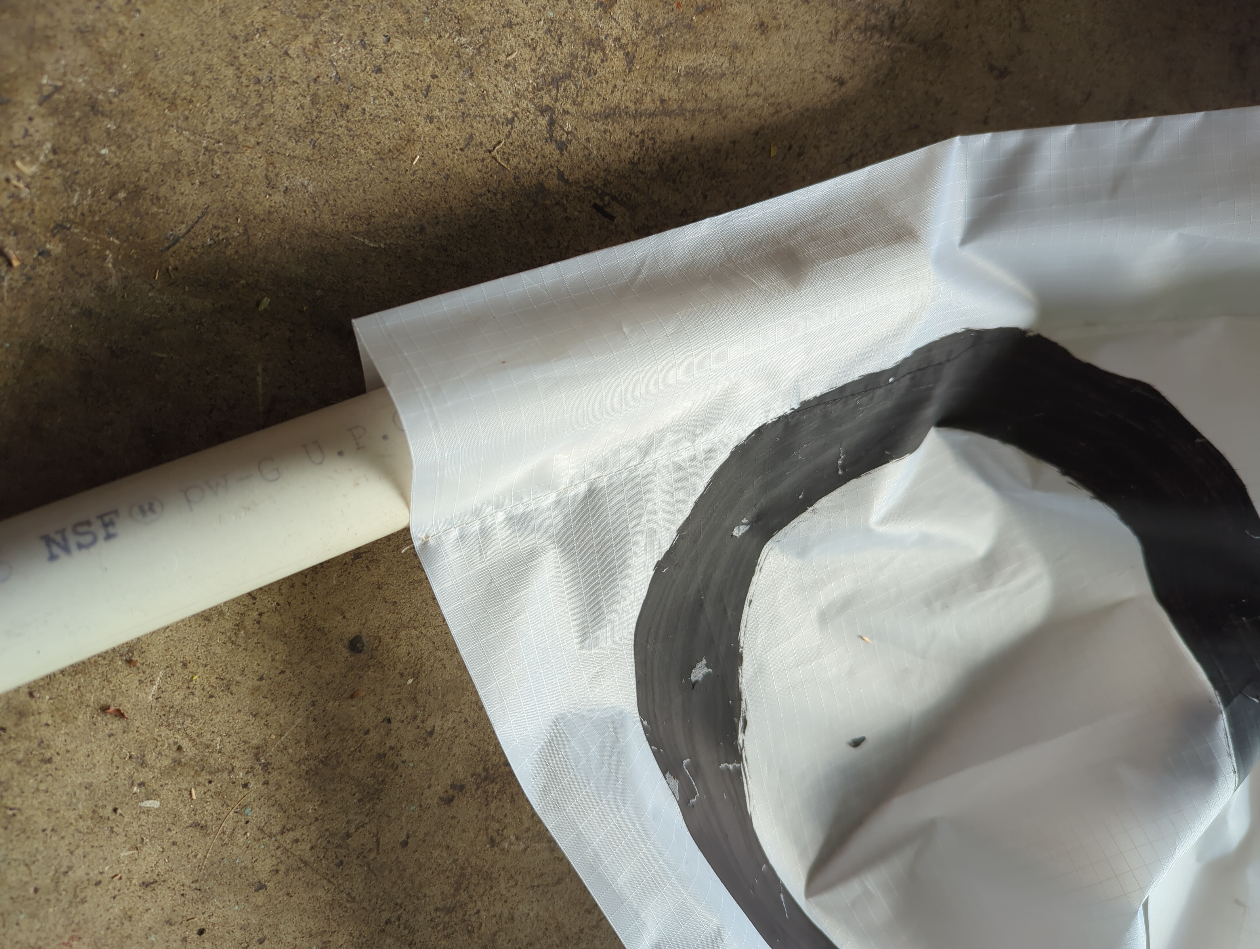 Hanging on a wall works slightly better for outlining with a sharpie, versus a garage door since it's not flat, so much of the tracing is done on a hanging fabric. But I don't have ~15 feet away from a wall with nothing on it or in the way. With a fresh sharpie, though, it's not a big deal, especially on such a plastic-y canvas: