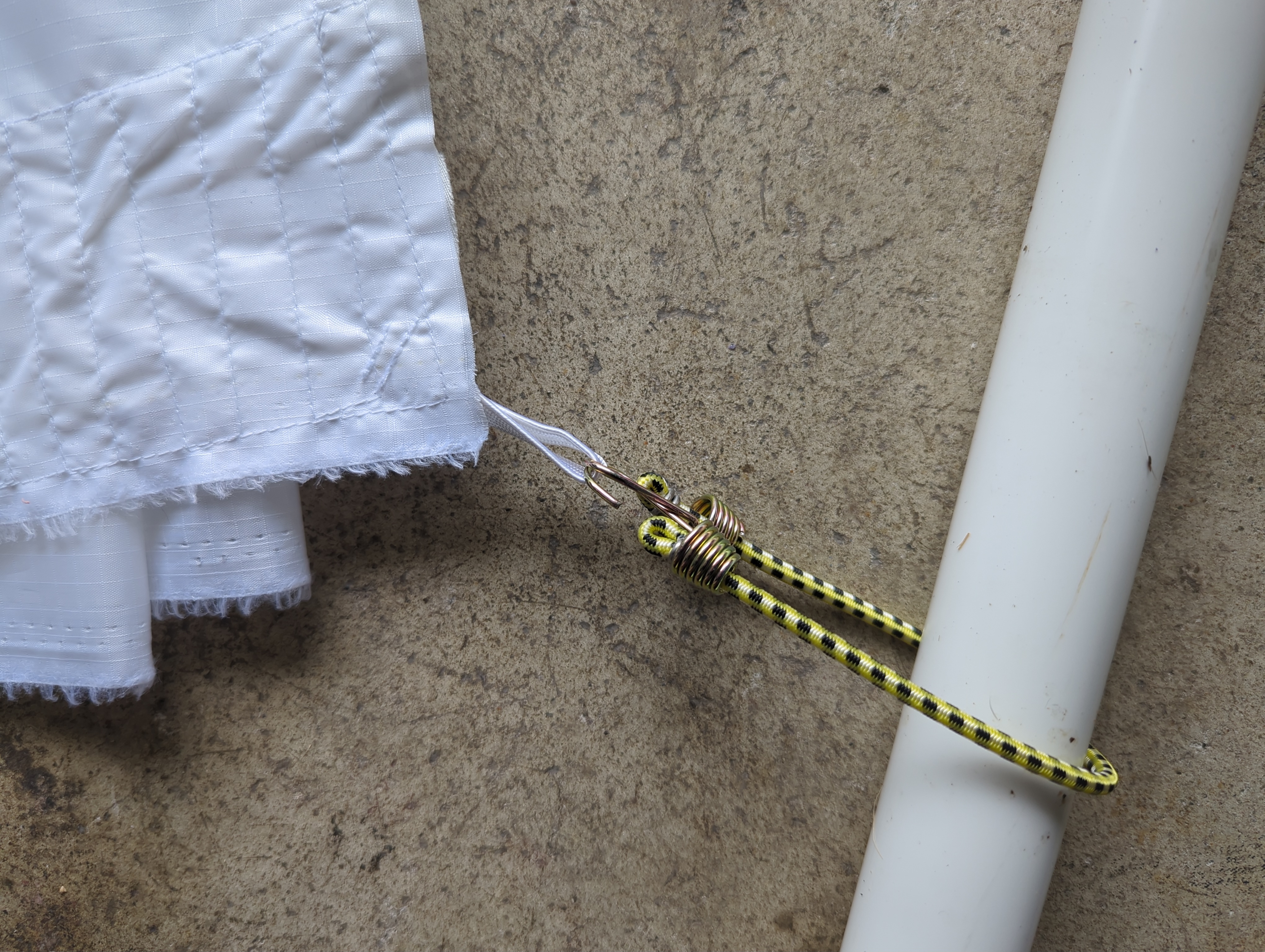 · Several 10-inch Mini Bungee Cords – used to tie the bottom of the banner to prevent flapping in the wind: https://www.amazon.com/dp/B00EC2CG9U