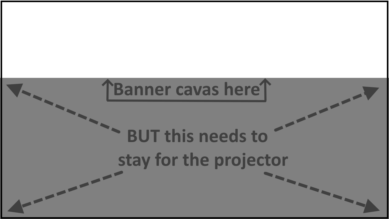 Remember that the image given to the projector needs to be 1280x720 (the entire outlined square) but the 10x2 banner canvas is just the white part, that's where the message goes.